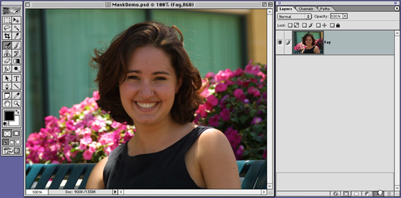 Now what you want to do is click once on the white box next to the new Layer. This will allow any painting you do on the canvas to only act on the MASK for the Layer. It's kind of wierd to get use to at first because, you are painting with BLACK on a picture of a pretty girl and all that is happening is that she is disappearing. If you want to return to painting on the image then click once on the full color ICON in the LAYERS TAB.